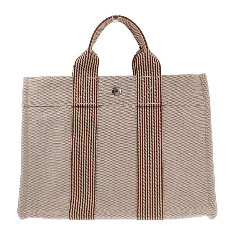 【HERMES】エルメス ニューフールトゥPM トートバッグ キャンバス ベージュ ブラウン シルバー金具 レディース メンズ【バッグ】