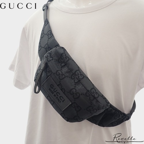 【GUCCI】グッチ ベルトバッグ ラージ 767934 ボディバッグ GGリサイクルポリエステル ブラック グレー シルバー金具 メンズ【バッグ】