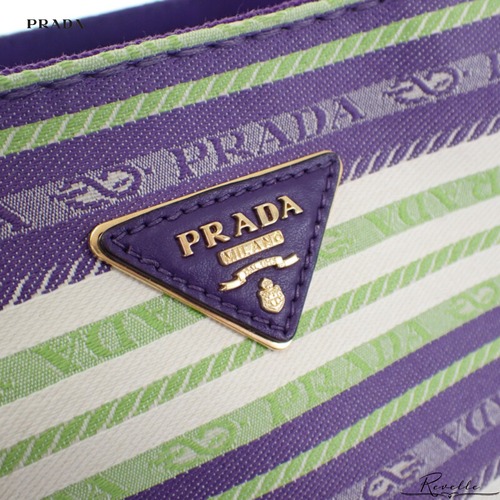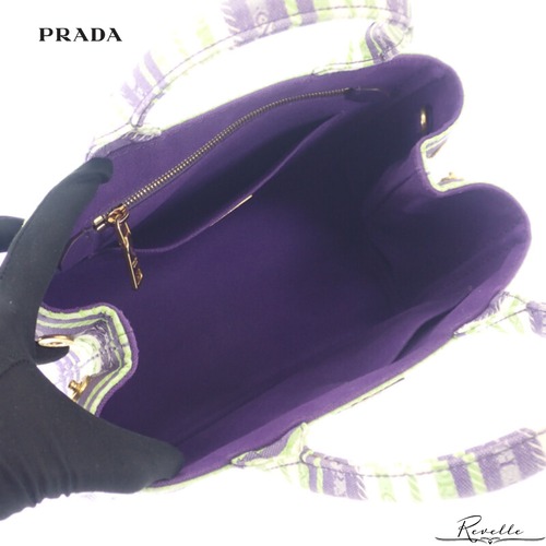 【PRADA】プラダ カナパトート ボーダー 1BG439 2WAYバッグ ショルダーバッグ キャンバス パープル グリーン ゴールド金具 レディース【バッグ】