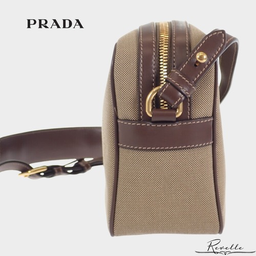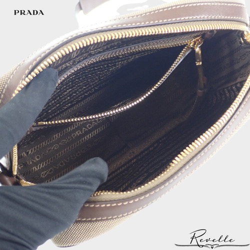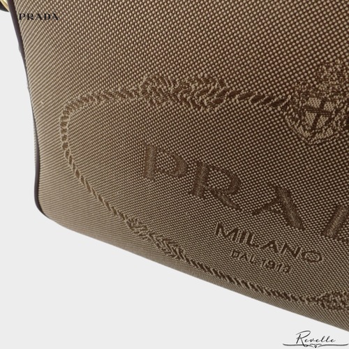 【PRADA】プラダ ロゴ ジャガード ショルダー 1BH089_UCW_F0B16 ショルダーバッグ キャンバス レザー ベージュ ブラウン ゴールド金具 レディース【バッグ】