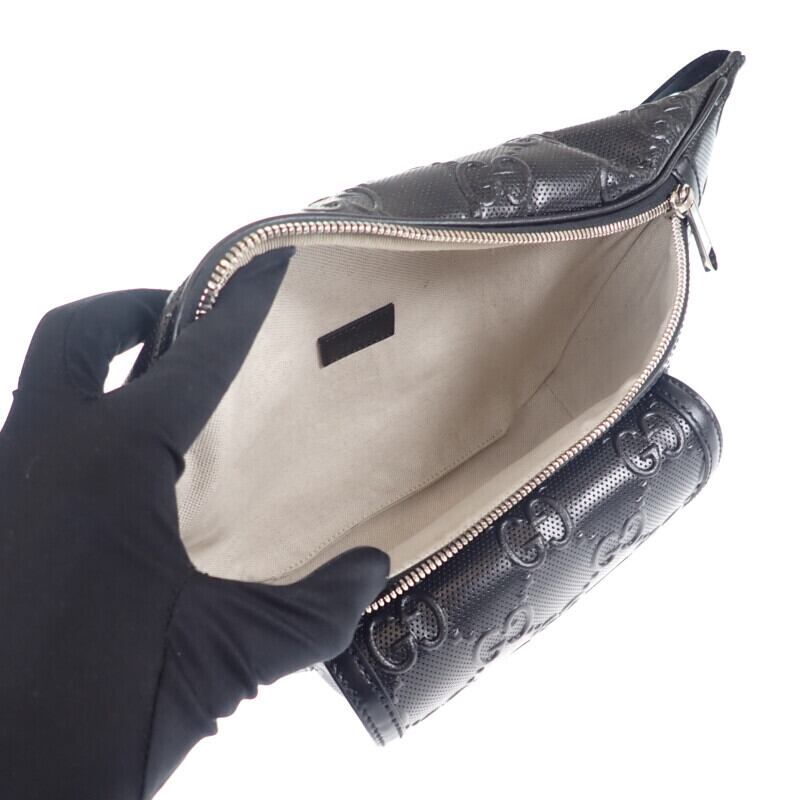 【GUCCI】グッチ GGエンボス ベルトバッグ ボディバッグ 645093_1W3CN_1000 レザー ブラック シルバー金具 メンズ【バッグ】
