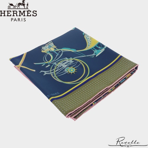 【HERMES】エルメス カレ90 折り畳み式幌馬車 LES VOITURES A TRANSFORMATION ソルド品 スカーフ シルク ネイビー レディース【スカーフ】
