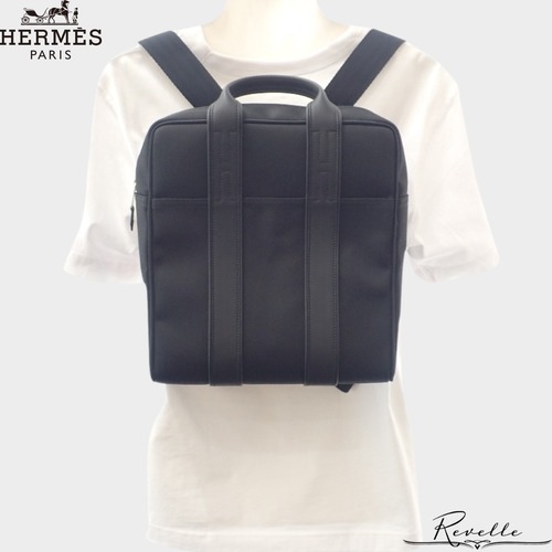 【HERMES】エルメス HERMES アカプルコ サック アド バックパック リュック・デイパック レザー トワルシェブロン ブラック メンズ【バッグ】
